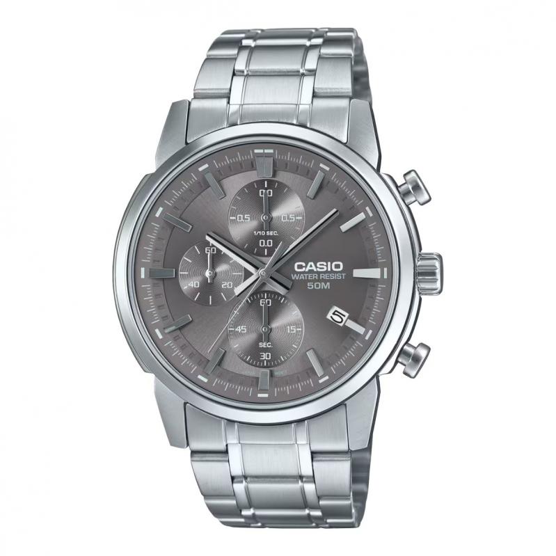 WATCH CASIO MAN MTPE510D8AVDF (42MM). Type of mechanism: QUARTZ. Display: ANALOGICAL. Material of case: STAINLESS STEEL. Colour of case: GREY. Material of bracelet: STAINLESS STEEL. Colour of bracelet: GREY. Dial Colour: GREY. Glass type: MINERAL. Clousure: FOLD-OUT. Diameter of dial: 42MM. Submersible: 5ATM