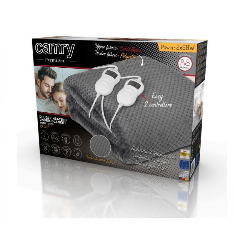 Camry CR 7417 electric blanket 2x 60 W Gray
