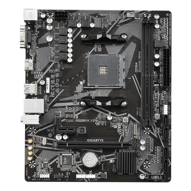 GIGABYTE A520M K V2 Motherboard - Supports AMD Ryzen 5000 Series AM4 CPUs, up to 5100MHz DDR4 (OC), PCIe Gen3 x4 M.2, GbE LAN, USB 3.2 Gen 1
