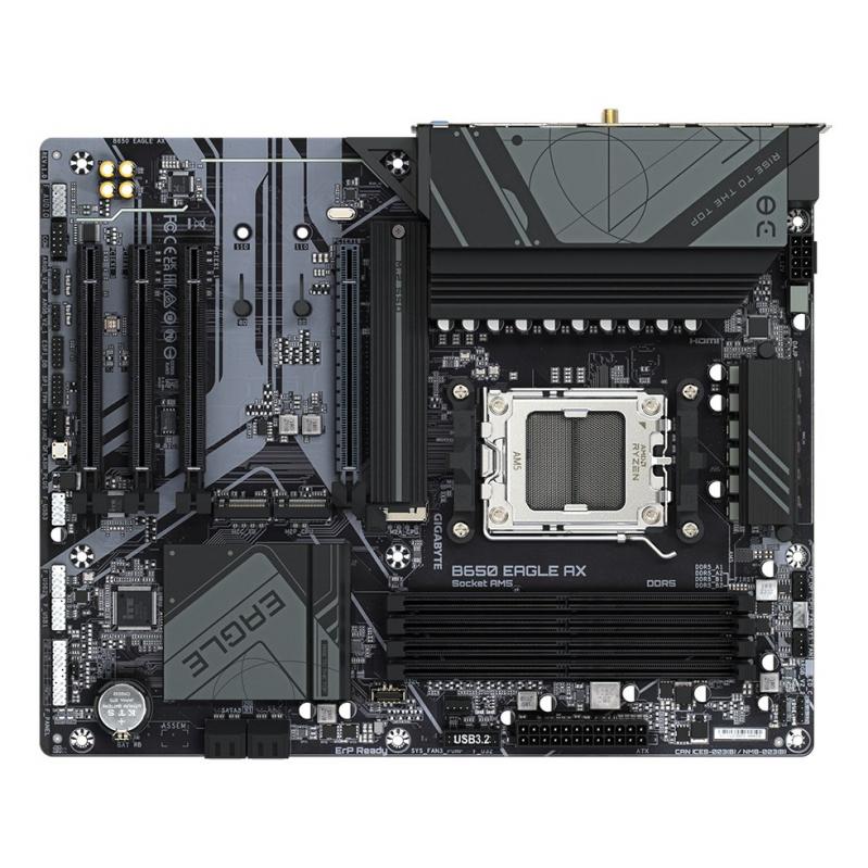 GIGABYTE B650 EAGLE AX Motherboard - AMD Ryzen 9000 Series CPUs, 12+2+2 Phases VRM, up to 7600MHz DDR5 (OC), 1xPCIe 5.0 + 2xPCIe 4.0 M.2, GbE LAN, WIFI 6E, USB 3.2 Gen 2