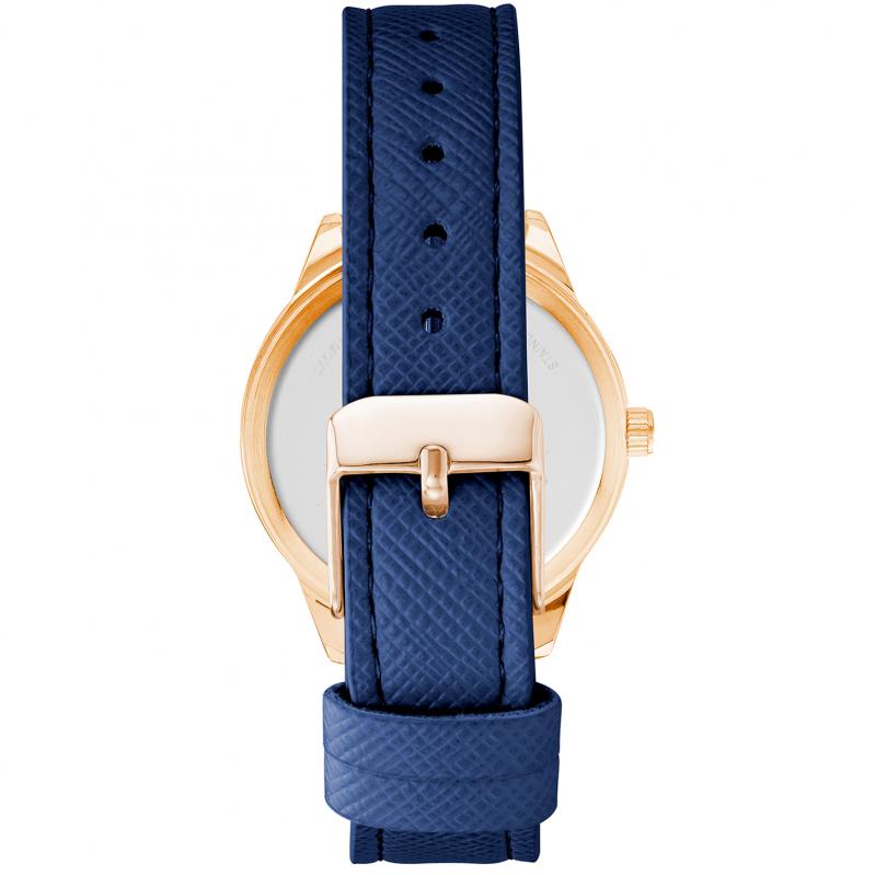 WATCH JUICY COUTURE WOMEN JC1300RGNV (35 MM). Type of mechanism: QUARTZ. Display: ANALOGICAL. Material of case: METAL. Colour of case: PINK. Material of bracelet: POLIPRIEL. Colour of bracelet: BLUE. Dial Colour: BLUE. Glass type: MINERAL. Clousure: BUCKLE. Diameter of dial: 35 MM. Submersible: NO