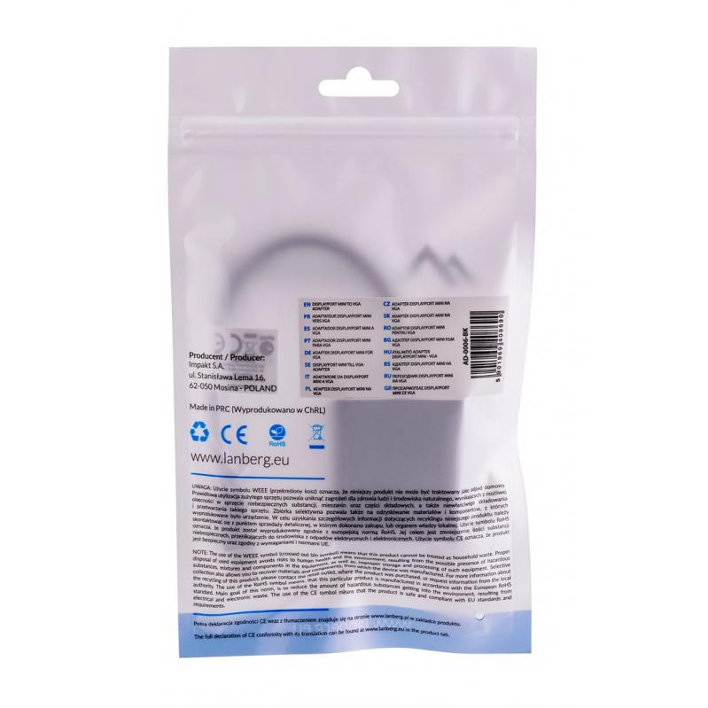 Lanberg AD-0006-BK video cable adapter 0.2 m VGA (D-Sub) Mini DisplayPort Black