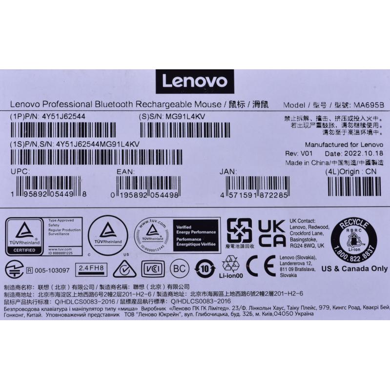 Lenovo 4Y51J62544 mouse Right-hand Bluetooth Optical 2400 DPI