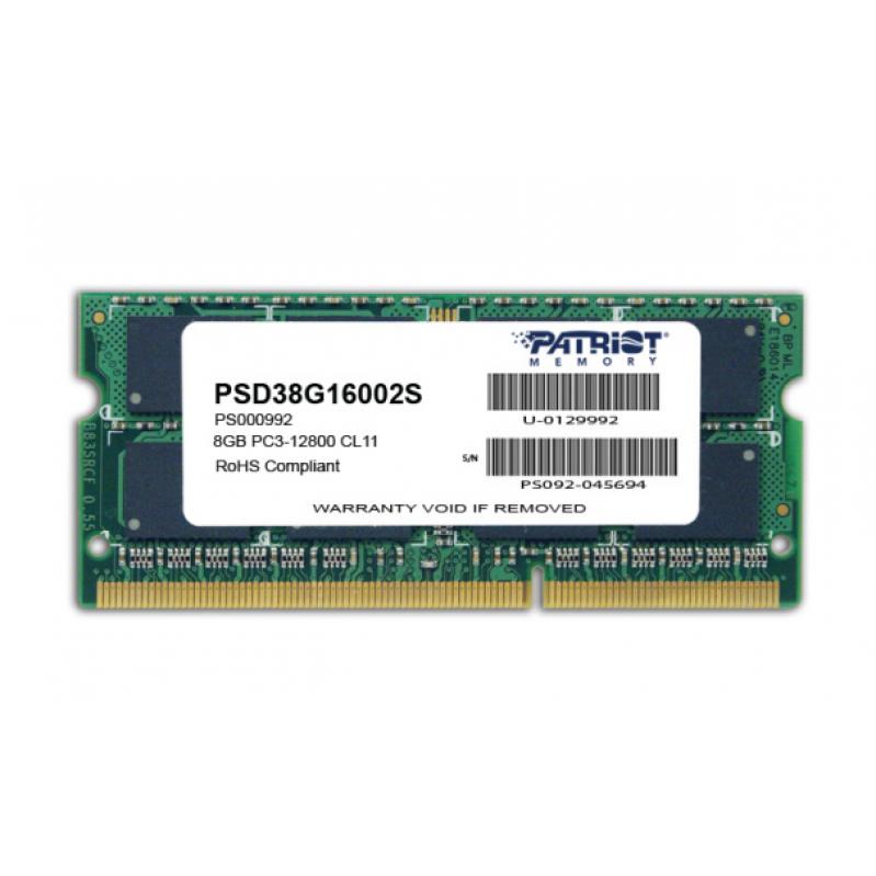 410509 Patriot Memory 8GB PC3-12800 memory module DDR3 1600 MHz - PAMPATSOO0018 - Patriot Memory - PSD38G16002S