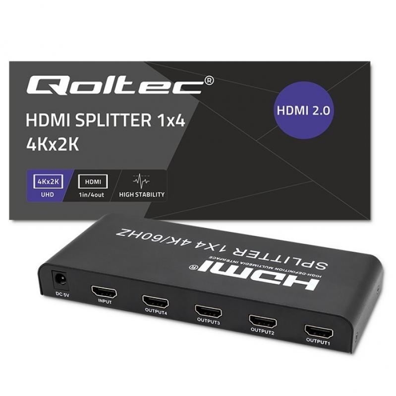 Qoltec 51799 Active HDMI Splitter 4 x HDMI 4K x 2K | 6Gb/s | 60Hz