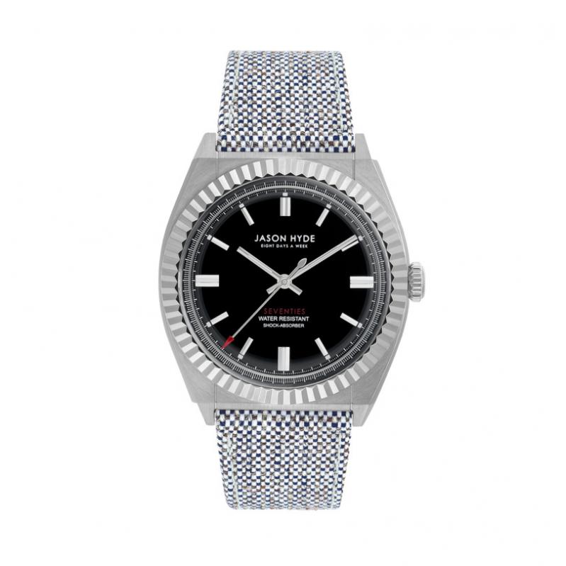 WATCH JASON HYDE MAN JH10002 (40MM). Type of mechanism: QUARTZ. Display: ANALOGICAL. Material of case: STAINLESS STEEL. Colour of case: GRAY. Material of bracelet: TEXTILE. Colour of bracelet: GRAY. Dial Colour: BLACK. Glass type: MINERAL. Clousure: BUCKLE. Diameter of dial: 40MM. Submersible: 5ATM
