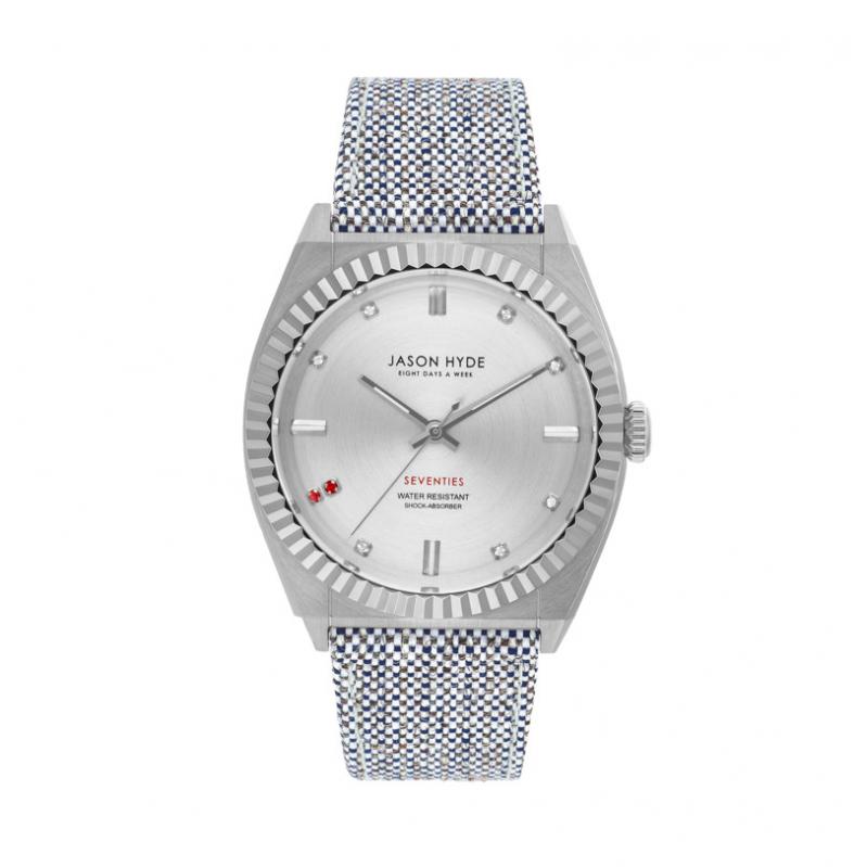 WATCH JASON HYDE WOMAN JH20000 (36MM). Type of mechanism: QUARTZ. Display: ANALOGICAL. Material of case: STAINLESS STEEL. Colour of case: GRAY. Material of bracelet: TEXTILE. Colour of bracelet: GRAY. Dial Colour: SILVER. Glass type: MINERAL. Clousure: BUCKLE. Diameter of dial: 36MM. Submersible: 5ATM