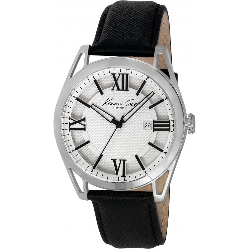 WATCH KENNETH COLE MAN IKC8072 (44MM). Type of mechanism: QUARTZ. Display: ANALOGICAL. Material of case: STEEL. Colour of case: SILVER. Material of bracelet: LEATHER. Colour of bracelet: BLACK. Dial Colour: WHITE. Glass type: MINERAL. Clousure: BUCKLE. Diameter of dial: 44MM. Submersible: NO
