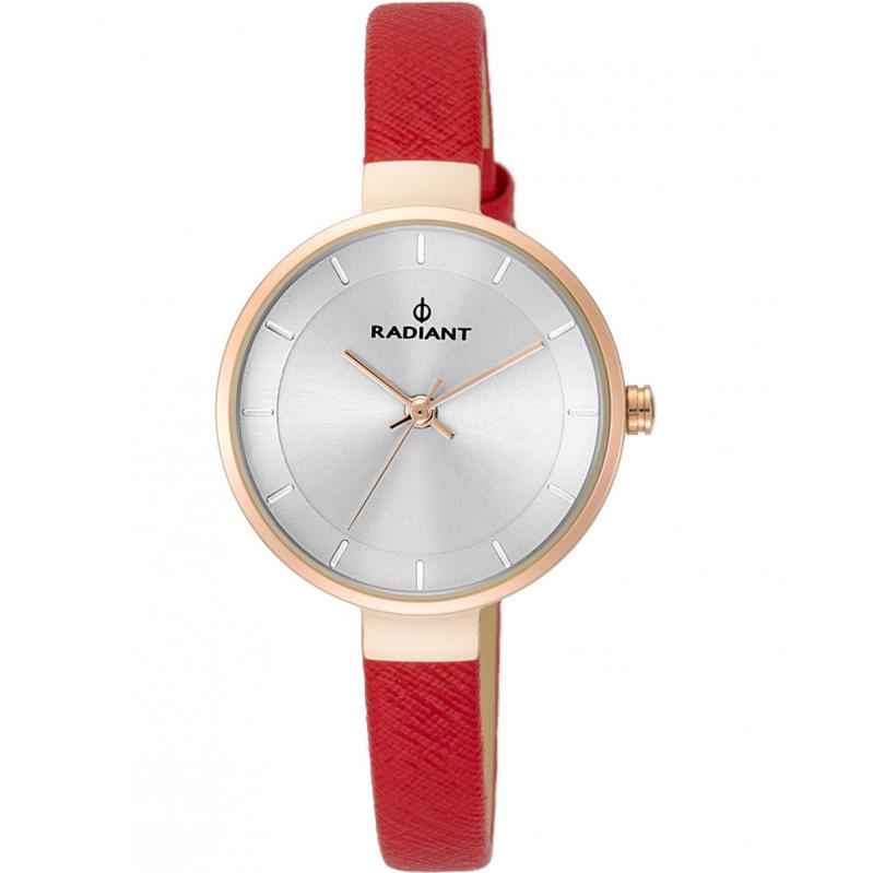 WATCH RADIANT WOMAN RA455205 (28MM). Type of mechanism: QUARZT. Display: ANALOGIC. Material of case: METAL. Colour of case: PINK. Material of bracelet: SYNTHETIC LEATHER. Colour of bracelet: RED. Dial Colour: SILVER. Glass type: MINERAL. Clousure: PRESSURE. Diameter of dial: 28MM. Submersible: 3 ATM
