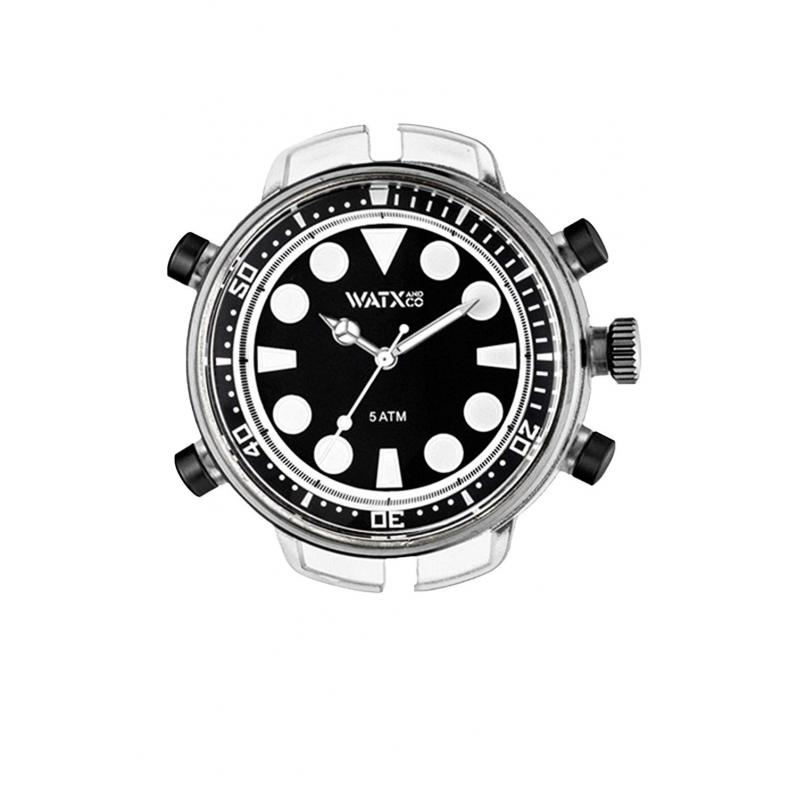 WATCH WATXANDCO UNISEX RWA5700 (49MM). Type of mechanism: QUARTZ. Display: ANALOGICAL. Material of case: POLYCARBONATE. Colour of case: CLEAR. Material of bracelet: . Colour of bracelet: . Dial Colour: BLACK. Glass type: MINERAL. Clousure: BUCKLE. Diameter of dial: 49MM. Submersible: 5ATM