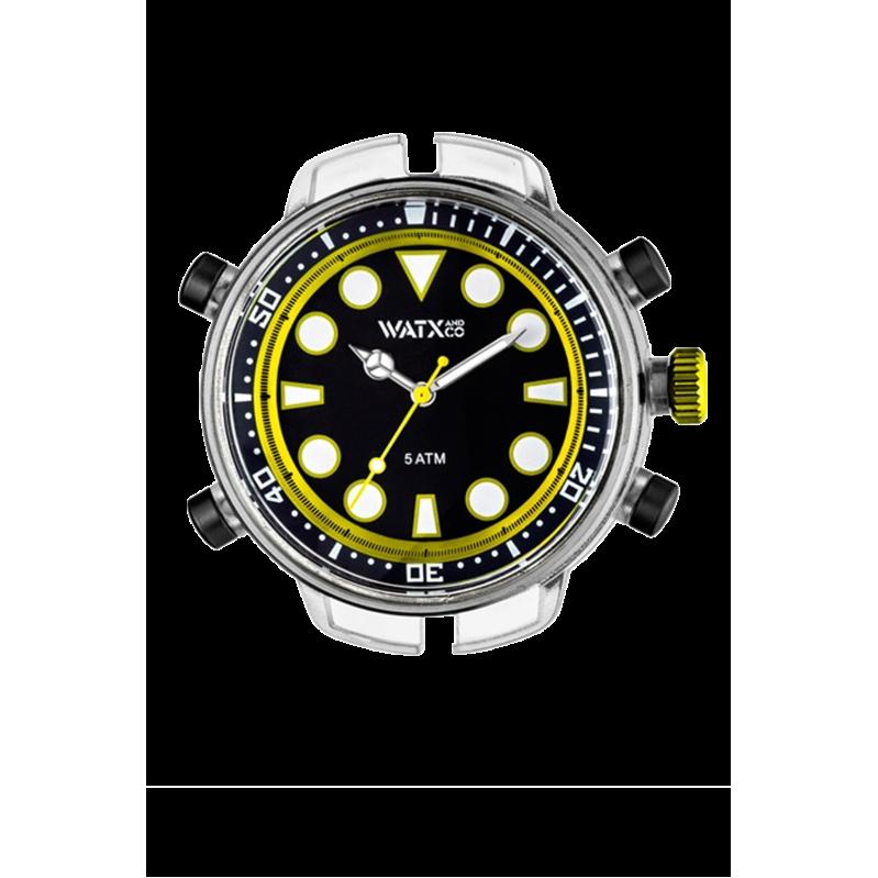 WATCH WATXANDCO UNISEX RWA5703 (49MM). Type of mechanism: QUARTZ. Display: ANALOGICAL. Material of case: POLYCARBONATE. Colour of case: TRANSPARENT. Material of bracelet: . Colour of bracelet: . Dial Colour: BLACK. Glass type: MINERAL. Clousure: BUCKLE. Diameter of dial: 49MM. Submersible: 5ATM