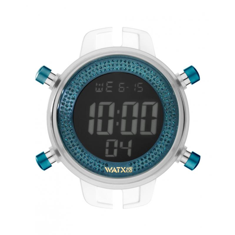 WATCH WATXANDCO WOMEN RWA1042 (43MM). Type of mechanism: QUARTZ. Display: DIGITAL. Material of case: POLYCARBONATE. Colour of case: TRANSPARENT. Material of bracelet: . Colour of bracelet: . Dial Colour: BLUE. Glass type: MINERAL. Clousure: . Diameter of dial: 43MM. Submersible: 5 ATM
